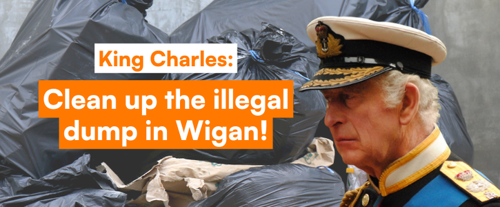 King Charles: Clean up the illegal dump in Wigan