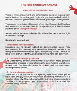 Manchester United is more than a business; it is a global football institution built by generations of supporters. For years, the club has carried growing debt, suffered poor sporting decisions, and operated without transparency at the ownership level. This campaign matters because silence guarantees decline.